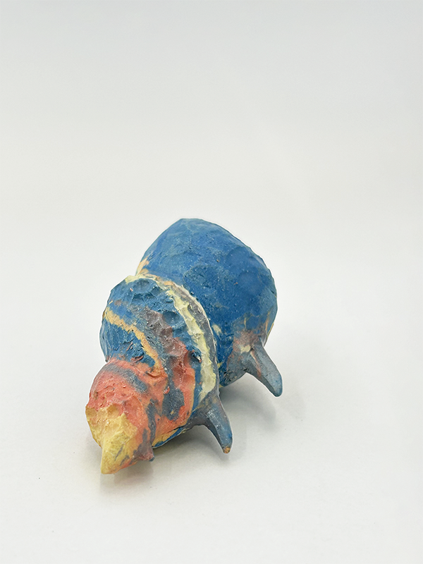 この作品は、複数の色の粘土を組み合わせ、独自の模様を生み出す練り込み技法を用いて作られています。グラデーションが施された色土を削り込むことで、美しい貝殻の形が完成しました。オリジナルの一点物で、インテリアに個性を添えるオブジェとして、また卓上の小物としてもお使いいただけます。一つとして同じものがない、特別な作品です。