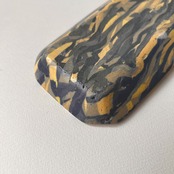 この作品は、複数の色の粘土を組み合わせ、独自の模様を生み出す練り込み技法を用いて作られています。青、黄、さらにこの2色の中間色を貼り合わせ、大皿、長皿、小鉢、豆皿、の4種を制作しました。