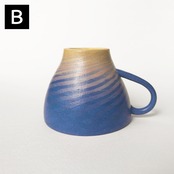 この作品は、複数の色の粘土を組み合わせ、独自の模様を生み出す練り込み技法を用いて作られています。夕方の空をモチーフに青から黄色に移り変わる中に垣間見える薄紅色がポイントです。